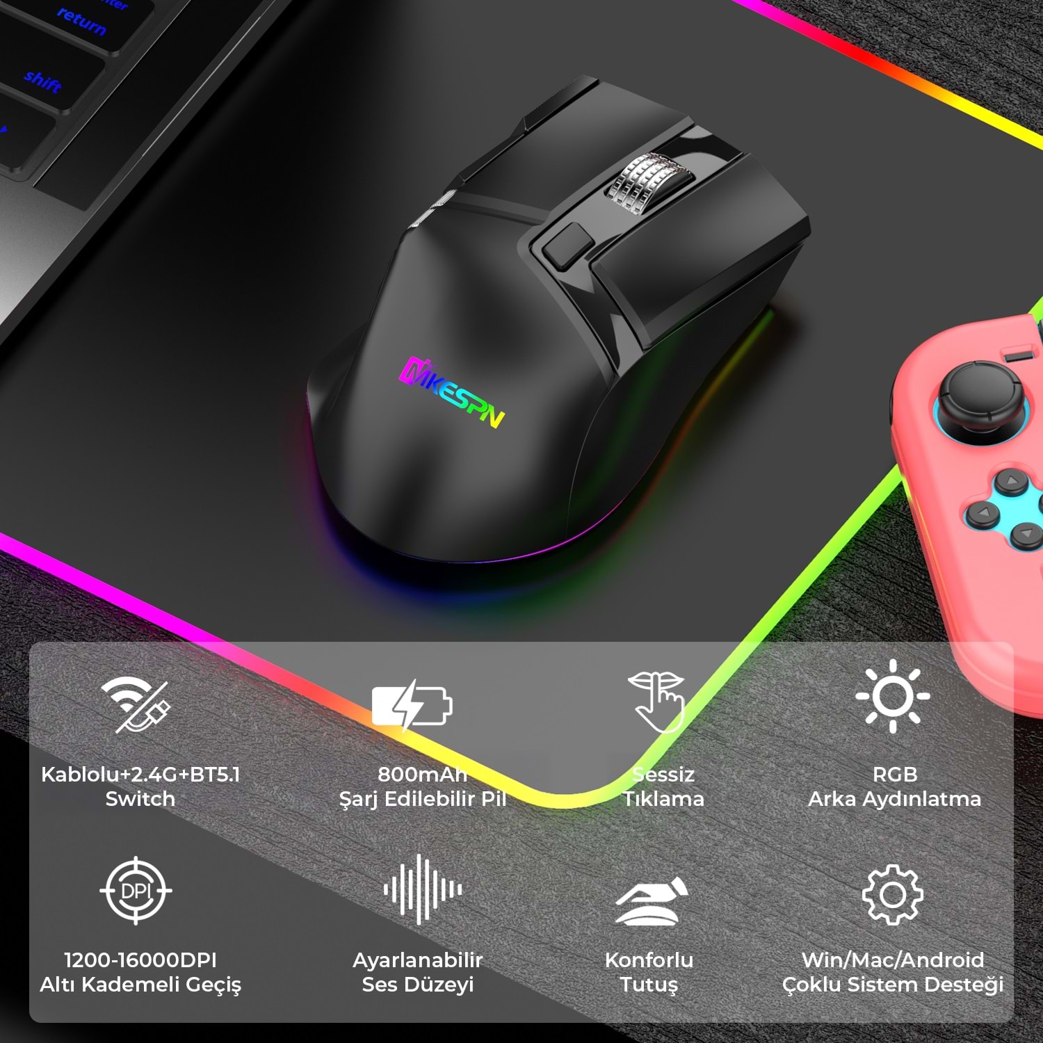 | Bağlantı | : Bluetooth + 2.4GHz Kablosuz |