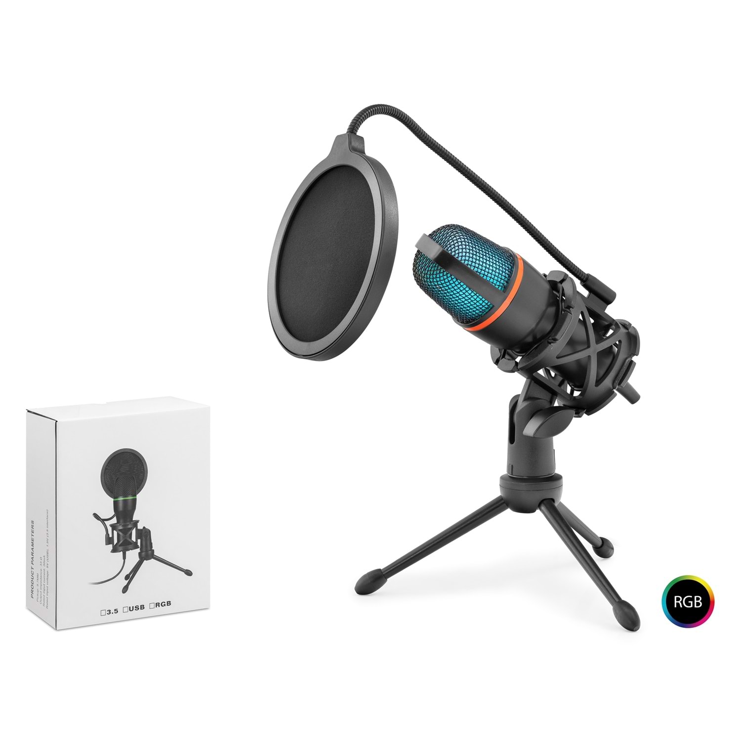 Hadron ME4 Profesyonel RGB Gaming Mikrofon - 192kHz/24Bit USB ve Type-C Bağlantılı