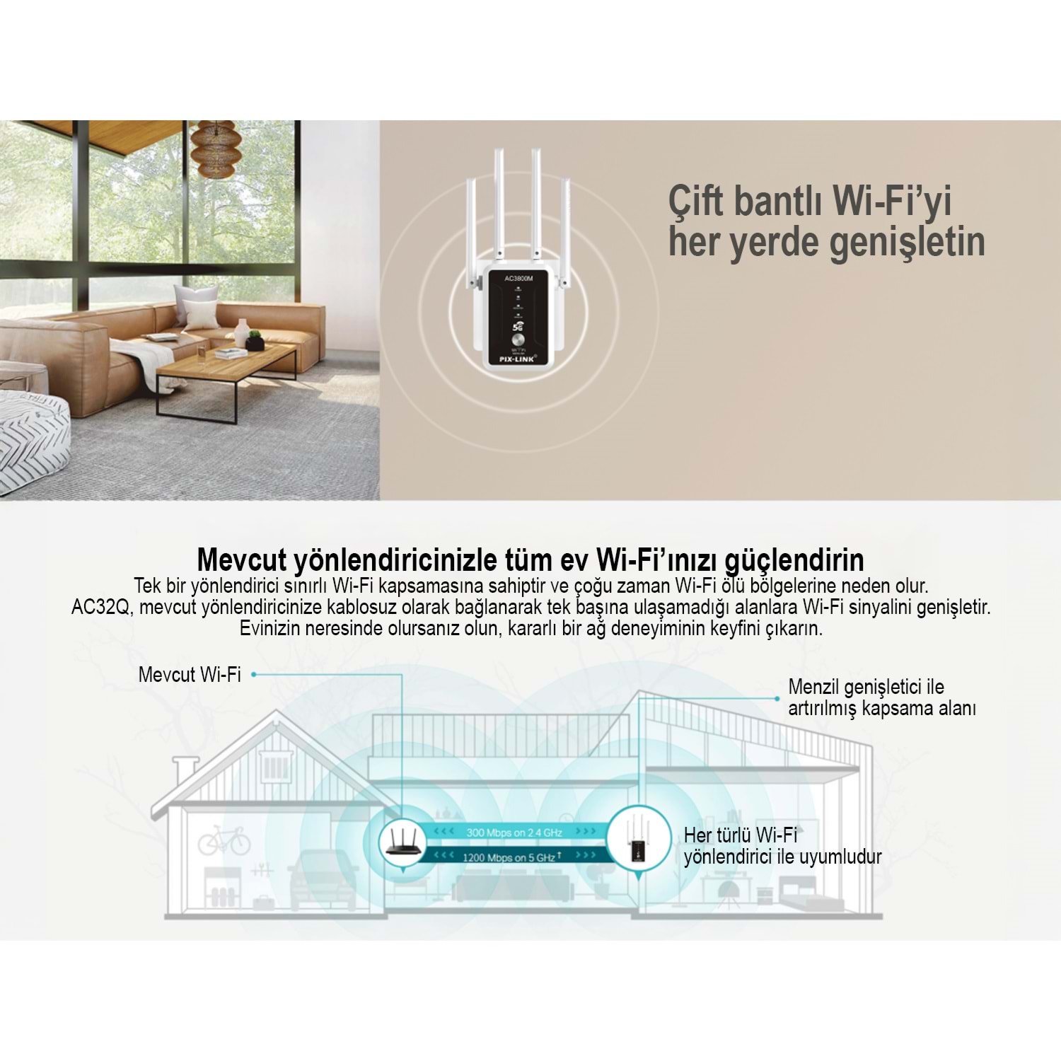 PIX-LINK LV-AC32Q, ev ve ofislerdeki internet erişim sorunlarını kökten çözmek için geliştirilmiş ultra performanslı bir ağ genişleticidir. AC3800 hız kapasitesi sayesinde, 5 GHz bandında gecikmesiz oyun ve 4K yayın deneyimi sunarken, 2.4 GHz bandıyla geniş kapsama alanı sağlayarak ölü noktaları tamamen ortadan kaldırır.